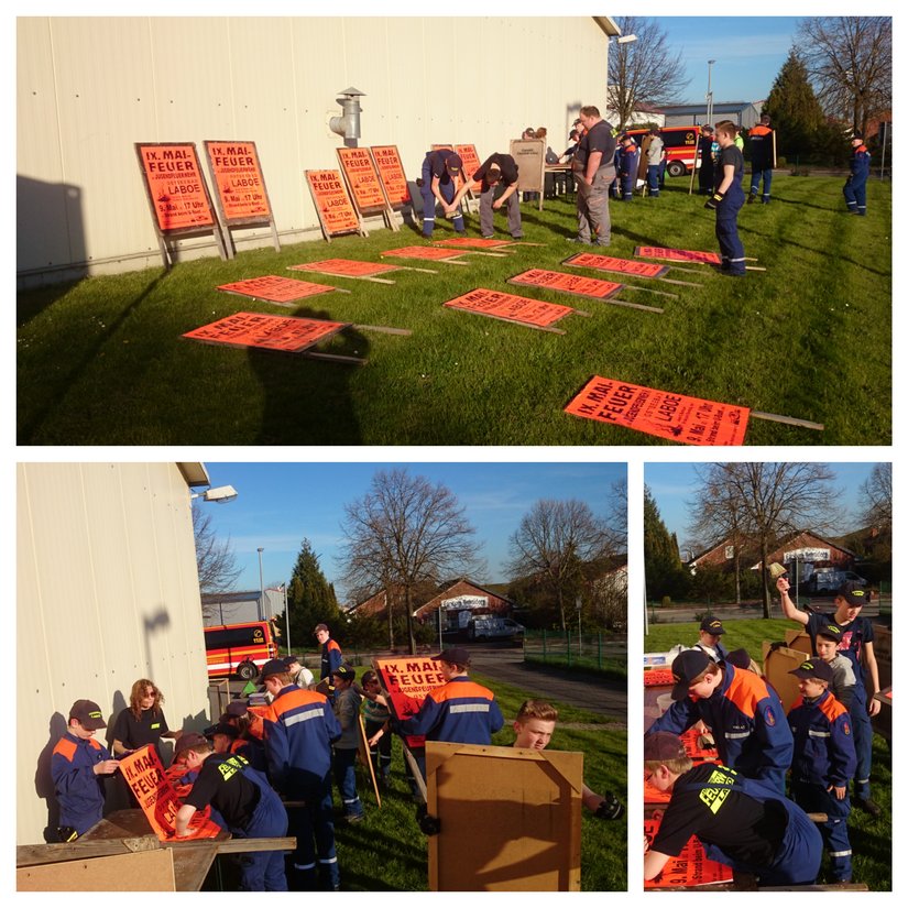 Die Jugendfeuerwehr Laboe bereitet sich auf ihr IX. Maifeuer vor. Dafür wurden beim letzten Dienst am Mittwoch die Plakataufsteller beklebt und Plakate verteilt. Seien auch Sie dabei, wenn es am 9. Mai 2015 am Strand hinter dem U-Boot bei Grillwurst, Stockbrot und einem kühlen Getränk heißt, den Winter zu vertreiben.
