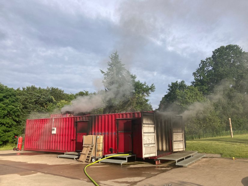 In dem Container wird es zeitweise über 500°C warm, durch aber moderne Einsatzkleidung sind wir sehr gut davor geschützt.