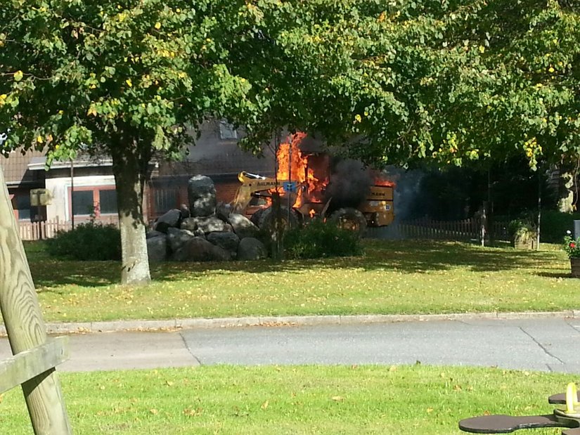 Im Bereich Röbsdorf kam es zu einem Brand einer Baumaschine. Die Feuerwehr Laboe wurde von der Feuerwehr Probsteierhagen zur nachbarschaftlichen Unterstützung angefordert. Höhe Kreisel Bodelsdorf konnten das Laboer HLF 20/30 einrücken, da das Feuer unter Kontrolle war. Der ELW 1 fuhr bis zum Einsatzort und sperrte für einige Zeit die Zufahrt nach Röbsdorf ab der B502 für den Verkehrs. Aufgrund er ausgelaufenen Betriebsstoffe und des kontaminierten Löschwassers musste die Straße bis in die späten Abendstunden gesperrt werden.