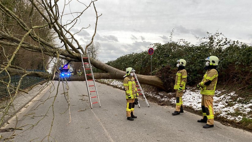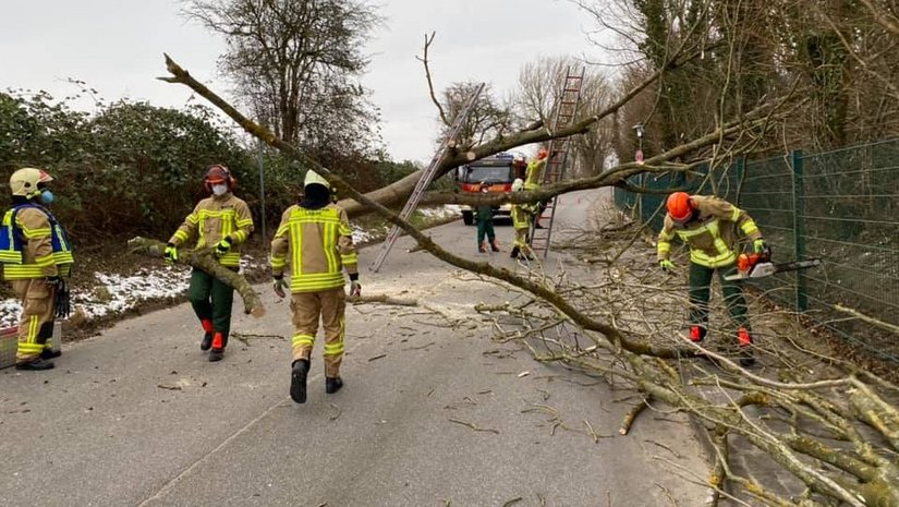 Für ungefähr eine Stunde war die Straße voll gesperrt, während der Baum durch uns beseitigt wurde. Nach 1,5 Stunden konnten wir wieder einrücken und uns bei der Leitstelle einsatzbereit melden.