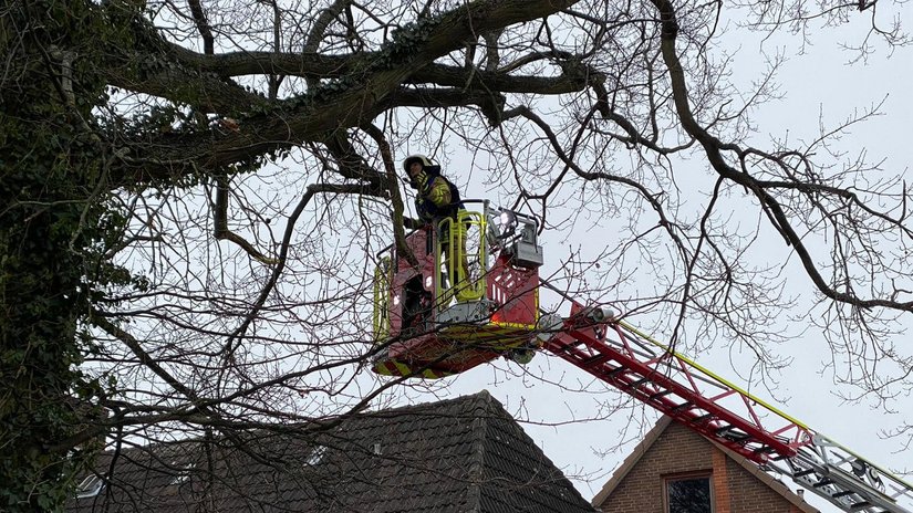 Bereits um 11:41 Uhr erreichte uns der nächste Einsatz. Dieses Mal ging es für uns in die Straße „Oberdorf“. Hier drohten einige Äste aufgrund des starken Windes an der Kreuzung zur „Teichstraße“ auf die Straße zu fallen. Mit Hilfe der Drehleiter wurden diese und noch weitere Äste entfernt und entsorgt. Der Einsatz dauerte keine ganze halbe Stunde und somit konnten wir bereits nach kurzer Zeit wieder einrücken.
