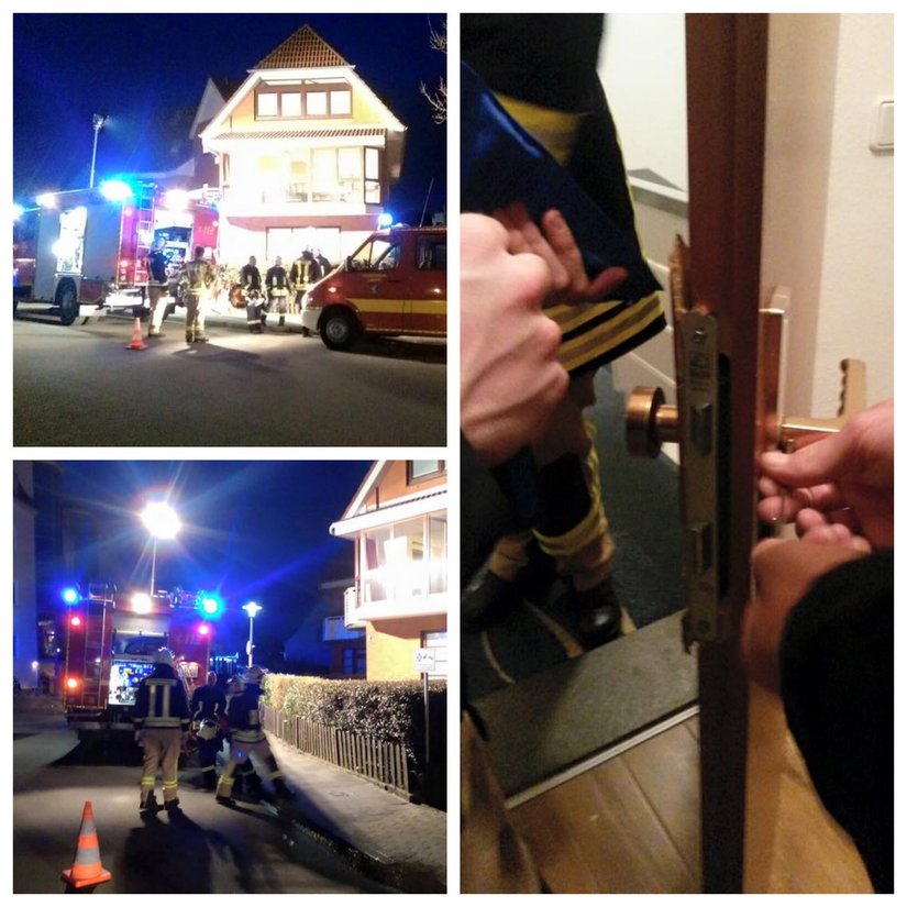 Am 27. März, kurz nachdem der Tatort im Erstem begonnen hatte wurde die Feuerwehr zu einem Wasserrohrbruch in einer Ferienwohnung alarmiert. Am Einsatzort wurde in der geschädigten Wohnung ein kleiner Wasserfall aus der oberen Decke erkundet. Da kein Schlüssel für die obere Wohnung zu gegen und der Besitzer nicht erreichbar war, wurde die Tür mittels Halligantool gewaltsam geöffnet. In der Wohnung wurde dann ein defektes Heizungsrohr festgestellt und dicht gesetzt. Anschließend setzte die Feuerwehr die Tür wieder notdürftig in Gang und Übergang den Einsatzort an die Polizei.