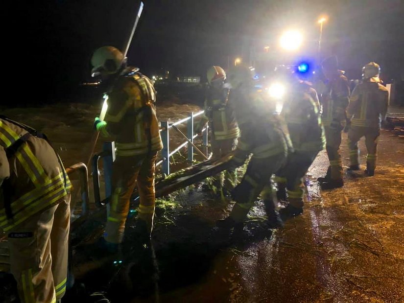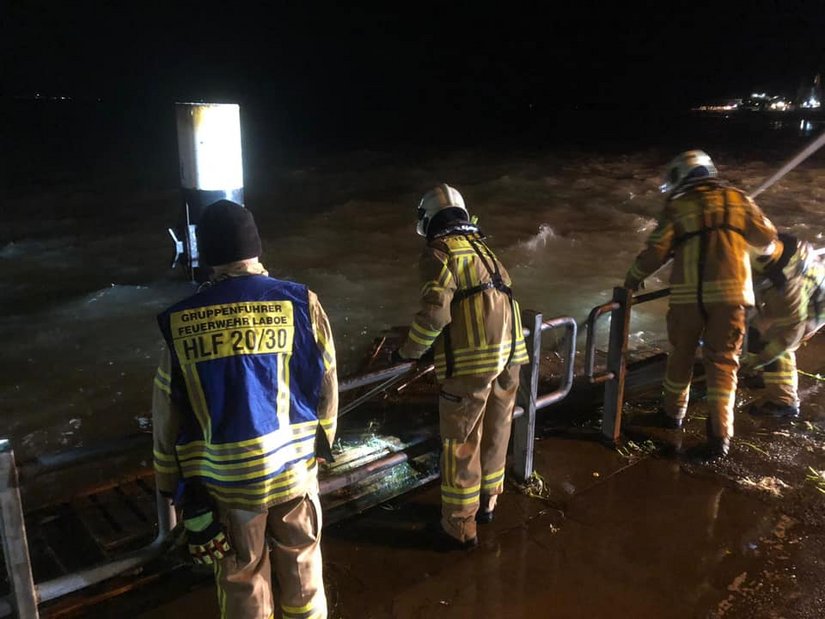 Auch nachdem der Pegel etwas gesunken war und der Wind abflaute, wurden wir zu unserem 4 Einsatz an dem Tag gerufen. Die Sandfänge, die normalerweise den Sand am Strand halten sollen, hatten sich nun durch die Überflutung und den Wind an der Hafeneinfahrt gesammelt. Da diese ein Hindernis und eine Gefahr für alle Schiffe darstellten wurden sie durch uns direkt aus dem Wasser gezogen.