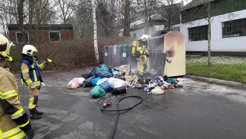 In der heutigen Mittagszeit alarmierte uns die Leitstelle Mitte zu einem Altkleidercontainer Brand. Der Angriffstruppführer ging unter schweren Atemschutz mit dem Schnellangriff vor und löschte den Brand. Nach der Kontrolle durch die Wärmebildkamera konnte „Feuer aus“ gemeldet werden.