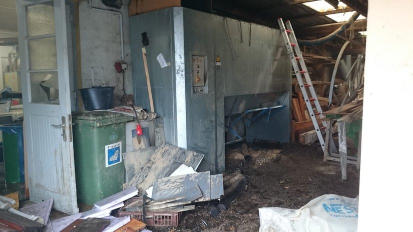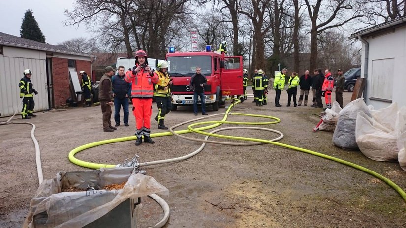 Etlichen Brennbare Materialien erschwerten das Vorgehen, sodass Holzbohlen, sowie Spänesäcke nach draußen verbracht wurden, was gleichzeitig eine mögliche Ausbreitung verhinderte.