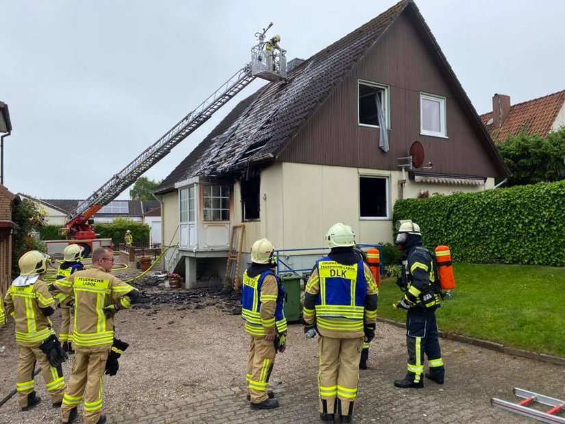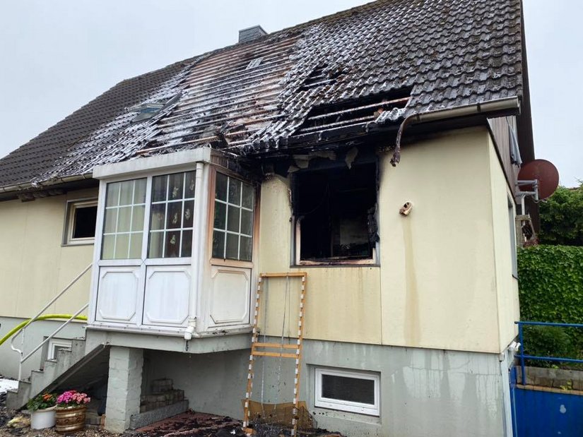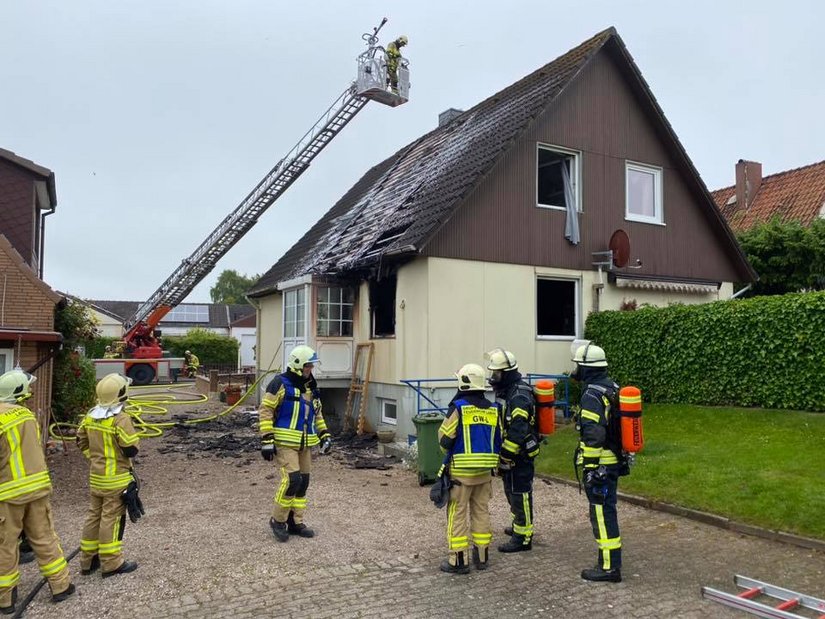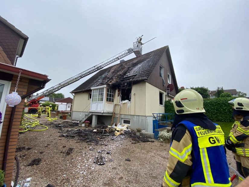 Beim Eintreffen der ersten Einsatzkräfte war bereits eine massive Rauchentwicklung vorhanden und Flammen schlugen aus dem Küchenfenster und aus dem Dachbereich.