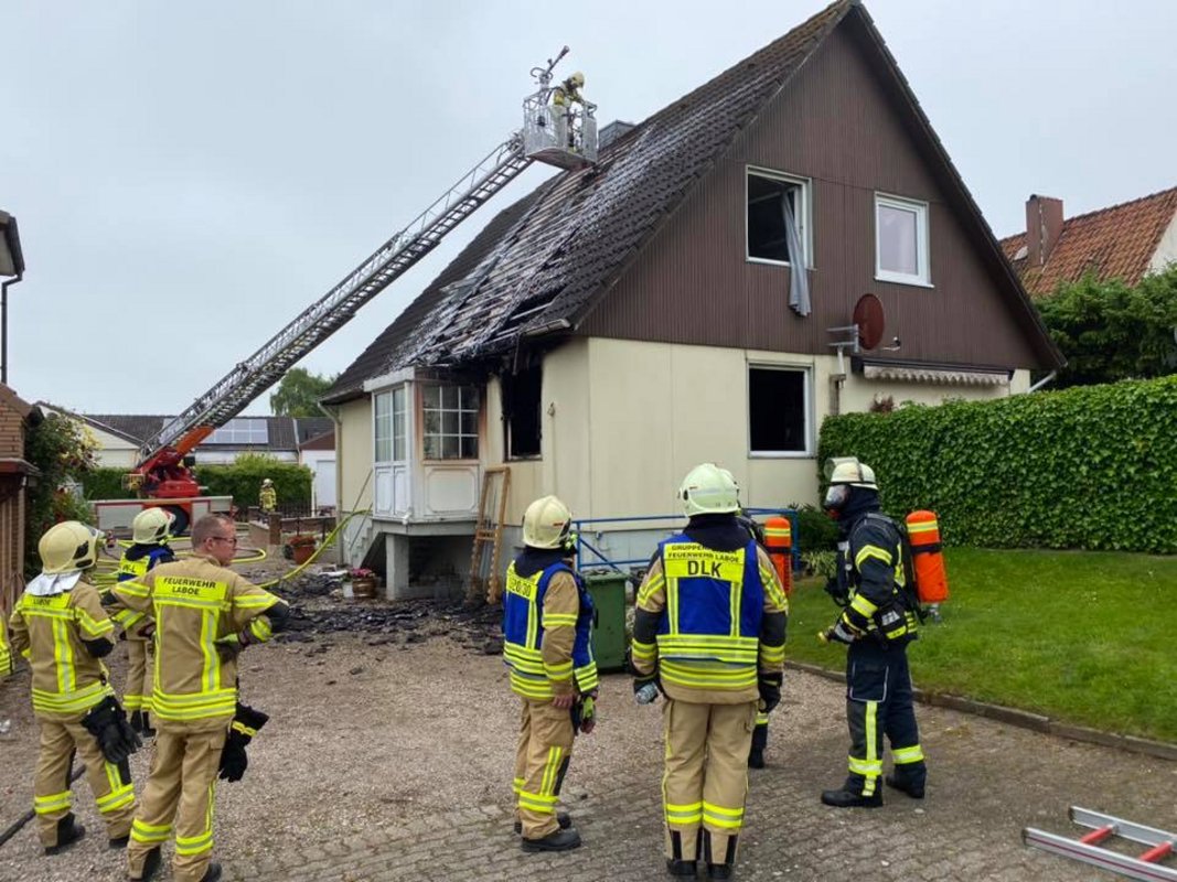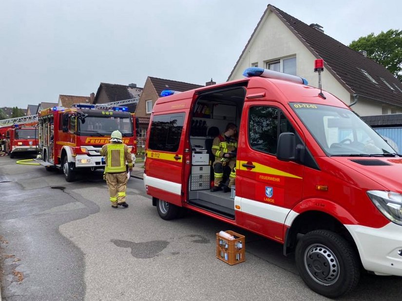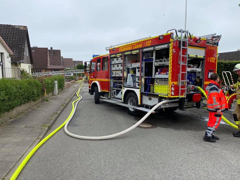 Zur personellen Verstärkung mit weiteren Atemschutzgeräteträgern wurde die Feuerwehr Brodersdorf und die Bundeswehrfeuerwehr des Munitionsdepots Laboe nachgefordert.