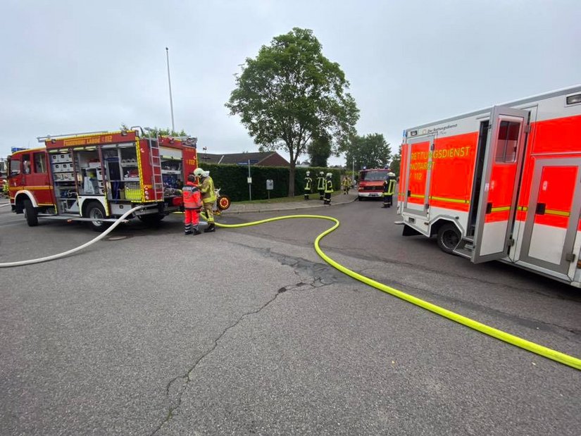 Es wurde ein sofortiger Löschangriff unter Atemschutz im Innen und Außenbereich durch mehrere Trupps vorgenommen. Gleichzeitig wurde die Drehleiter in Stellung gebracht, um das Dach zu öffnen und abzulöschen.