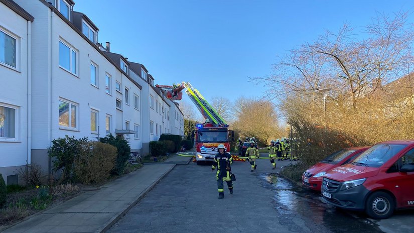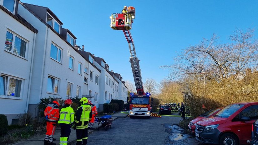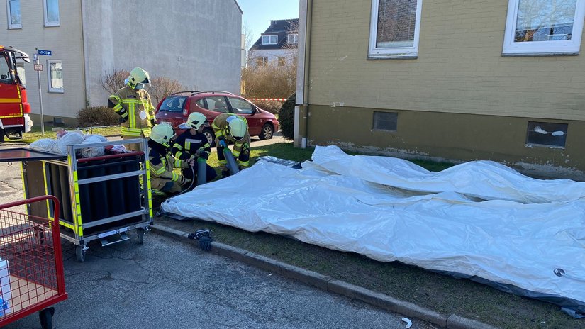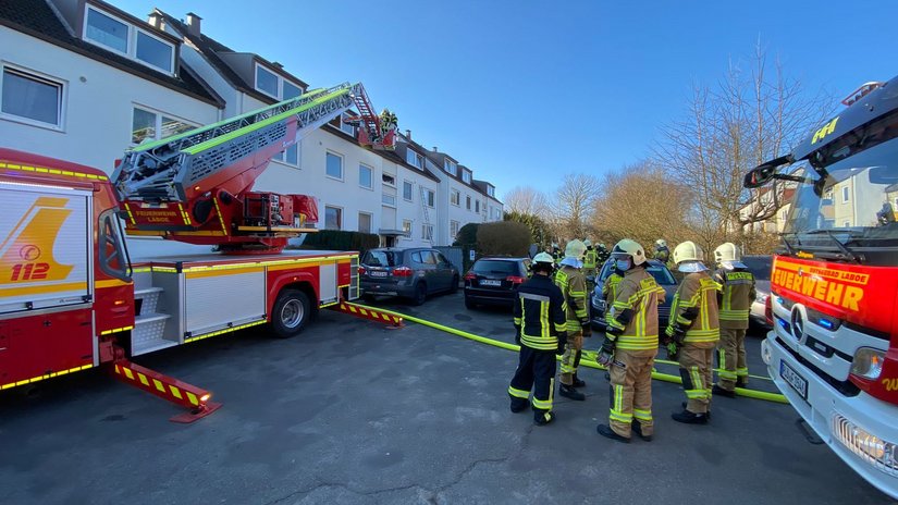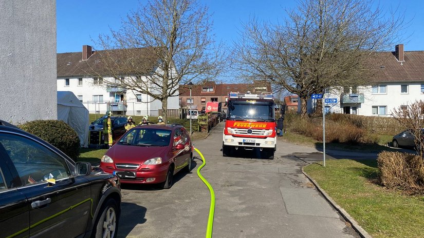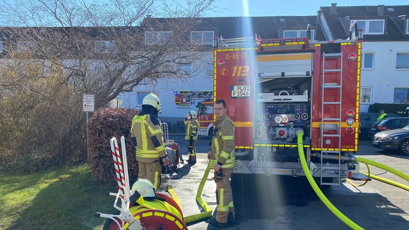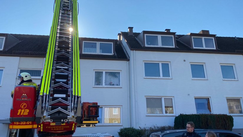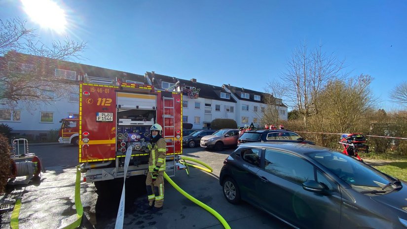 Da wir noch mit einigen Aufräumarbeiten beschäftigt waren, waren noch viele der Kameraden im Feuerwehrhaus. Bereits nach kurzer Zeit waren wir auf dem Weg zum Einsatzort, wo sich bereits eine starke Rauchentwicklung zeigte. Da sich noch mehrere Personen im Gebäude befanden, wurde die Menschenrettung über mehrere Trupps unter schwerem Atemschutz eingeleitet. Zustzlich wurde unsere DLAK 23/12 in Stellung gebracht. Eine Person musste von uns ebenfalls über eine Schleifkorbtrage gerettet und anschließend kurz an den Rettungsdienst übergeben werden. Im weiteren Verlauf wurden noch die Feuerwehr Brodersdorf und die Bundeswehrfeuerwehr aus Laboe nachalarmiert, um genügend Atemschutzgeräteträger vor Ort zu haben.