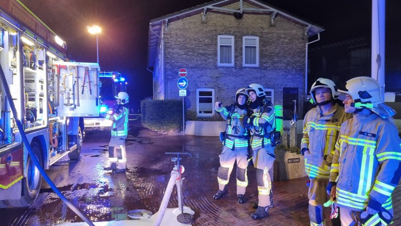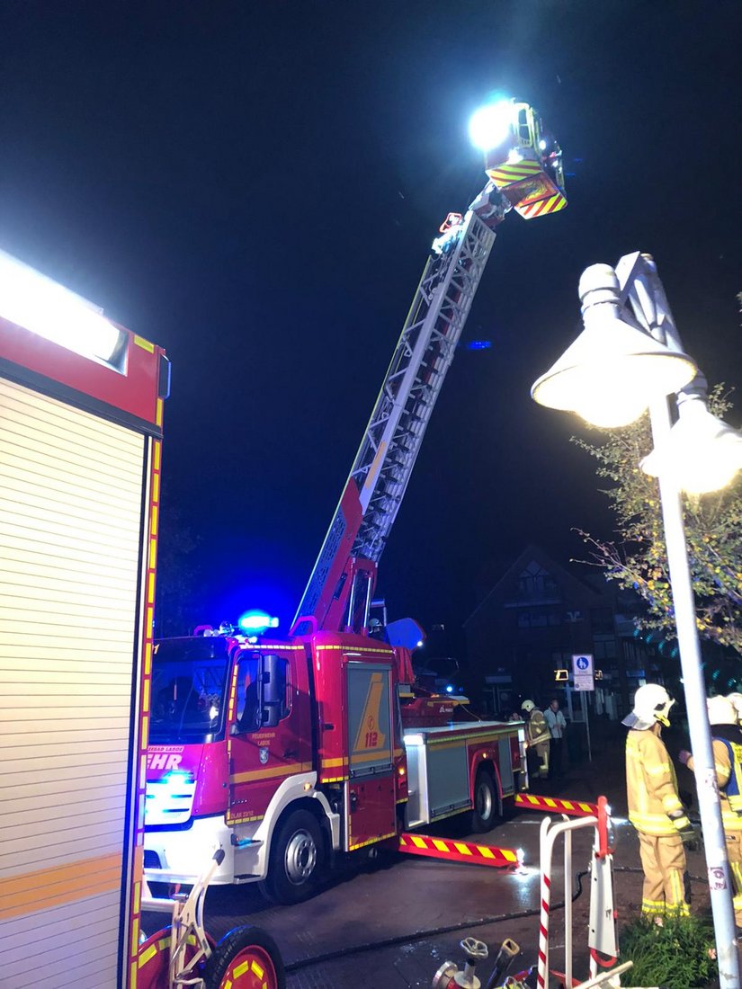 Das Einsatzende war um 02:31. Wir waren mit 26 Einsatzkräften (davon 4 Trupps unter Atemschutz) und dem kompletten Löschzug aus ELW, dem LF 20, der DLAK 23/12, dem HLF 20/30, dem GWL-1 und unserem MTF vor Ort. Auch ein Streifenwagen von der Polizei und ein Rettungswagen waren vor Ort.