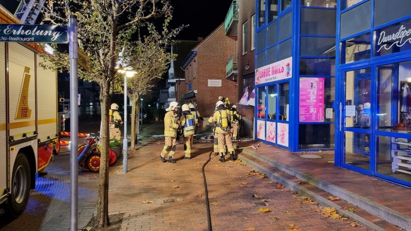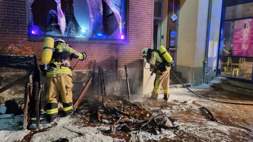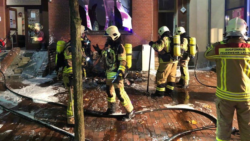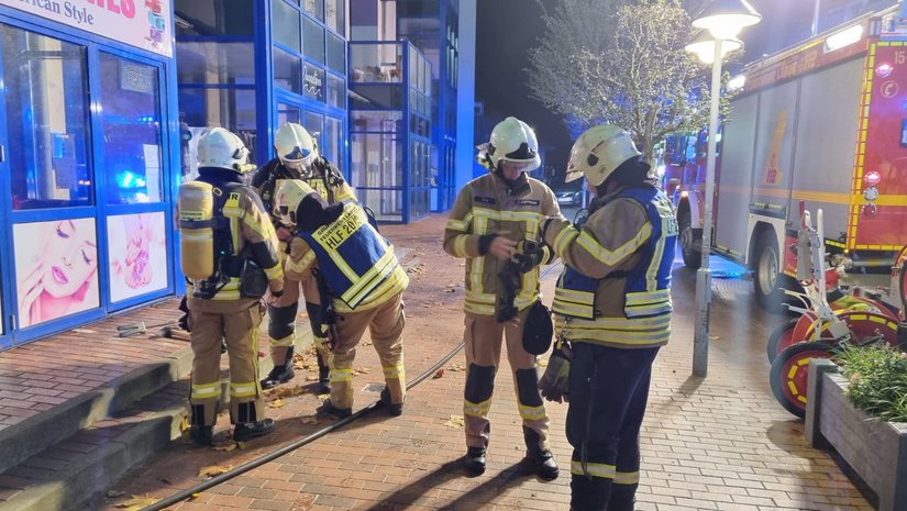 Wir gingen mit unserem Schnellangriff (schnell einsatzbarer, flexibler Schlauch) gegen die Flammen vor. Ein Trupp begab sich im weiteren Verlauf in das Geschäft, um dieses abzukontrollieren. Bereits um 01:34 Uhr konnte "Feuer unter Kontrolle" gemeldet werden.