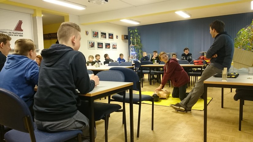Am Freitagabend stand bei der Jugendfeuerwehr Laboe die jährliche Ausbildung in der Ersten-Hilfe im Feuerwehr Haus statt. Unter der Leitung unsere Kameraden und Notfallsänitäters Birger übte die Jugendlöscher wichtige Grundsätze bei Auffinden von verletzen oder bewustlosen Personen. Aber auch die Anwendung der immer häufiger zu findenden AEDs (Automatisierter externer Defibrillator) wurde besprochen. Dank dieser regelmäßigen Ausbildung war jedoch zu erkennen, dass sich hier schon ein fundiertes Basiswissen eingeprägt hat. Wann war Ihr letzter erste Hilfekurs?