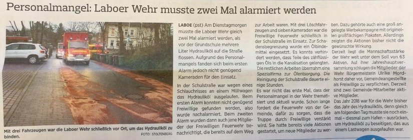 Wie man im heutigen Probsteier Herold entnehmen konnte, gibt es in unserer Wehr immer wieder Probleme mit der Tagesstärke bei einem Einsatz. Doch was bedeutet das für die Laboer Bürger?