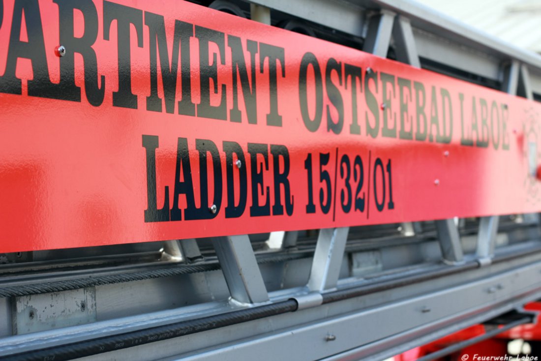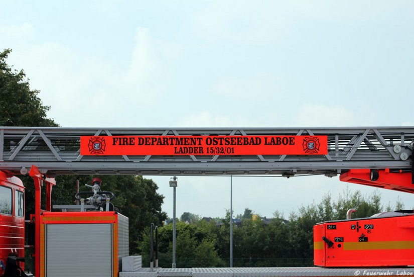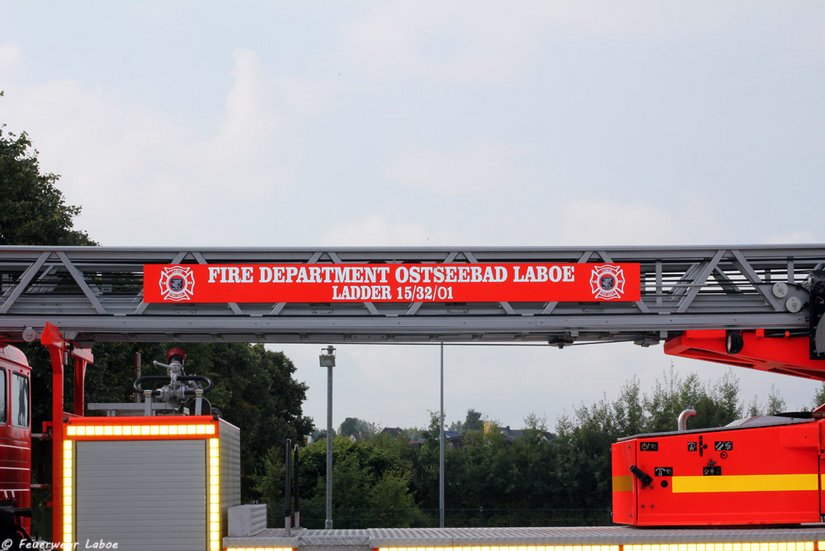 Seit gestern schmückt die Laboer Drehleiter ein neues Schild am Leiterpark. Die Aufschrift lautet:"Firedepartment Ostseebad Laboe Ladder 15/32/01" und sorgt somit als Eyecatcher. Zeil des Schildes ist es, die Leute ins Gespräch zu verwickeln und somit in Sachen Mitgliederwerbung zu agieren. Sie haben Fragen zu diesem Thema, dann besuchen Sie uns doch jeden Dienstag um 19h am Feuerwehrhaus Laboe.