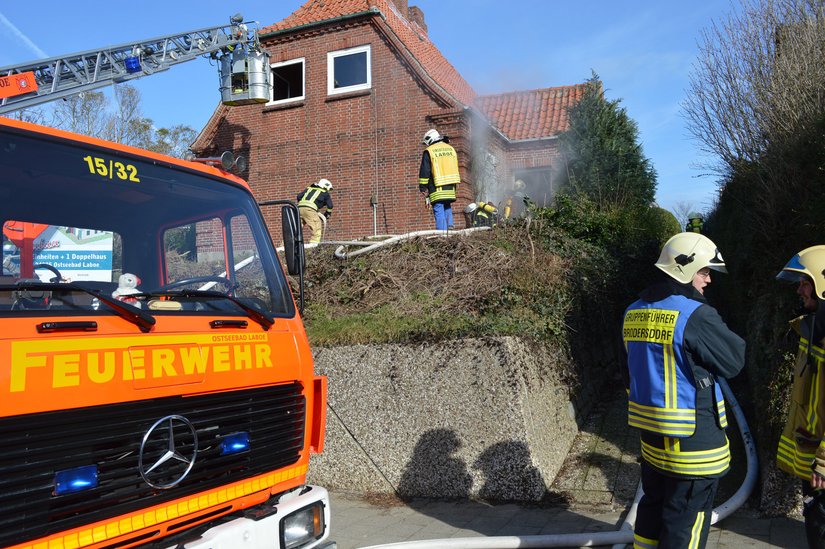 Die Leitstelle alarmierte um kurz nach 11h die Feuerwehren Laboe & Brodersdorf zu einer Rauchentwicklung in einem Mehrfamilienhaus, wo noch eine Person vermisst wurde. Aus diesem Grund rückten zusätzlich zwei Rettungswagen aus Probsteierhagen an.