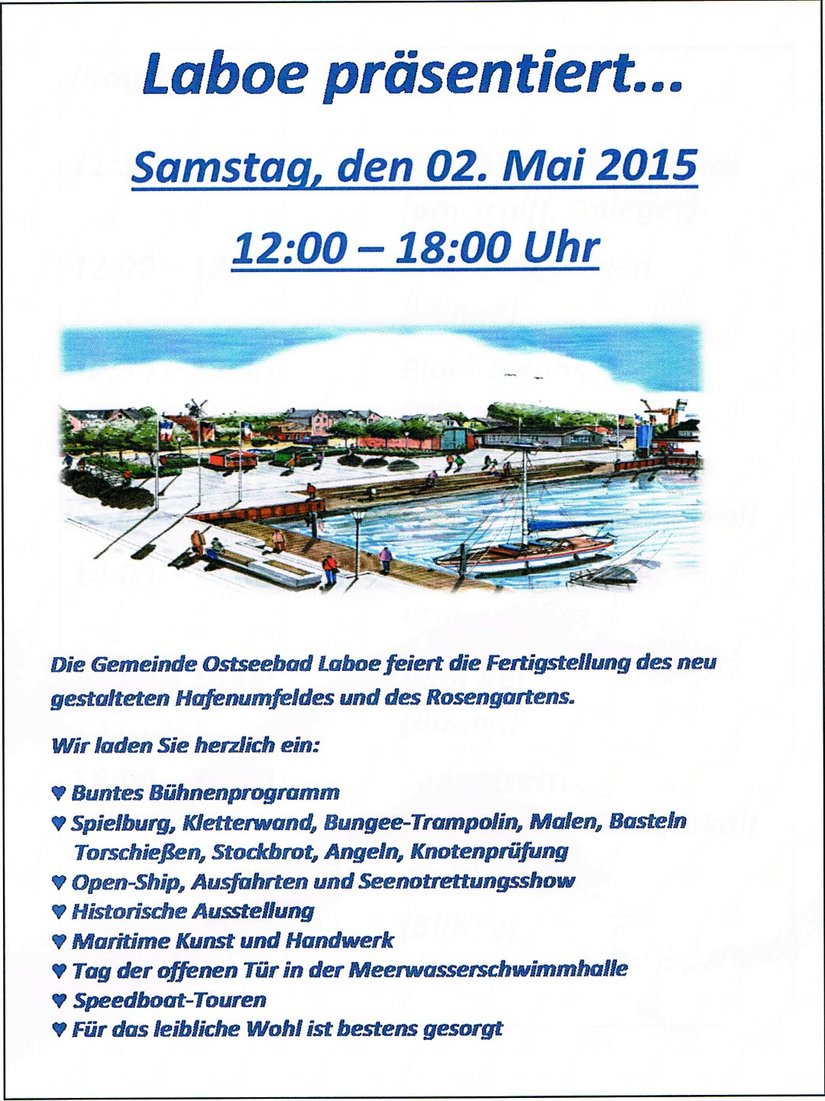 Seien Sie dabei am 02.05.2015 um 12:00 Uhr bei der Eröffnung des Laboer Hafenumfeldes.