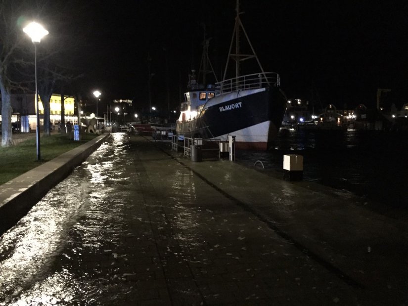 Wie angekündigt sorge das Sturmtief "Axel" für reichlich Hochwasser in der Kieler Förde. Um kurz vor 20 Uhr war der Wasserstand so hoch, dass die Feuerwehr ausrücken und Sandsäcke vor den Objekten Oceans Eleven, Aris Lotsenhaus, Britts Bude und der Fischküche aufstapeln musste. Insgesamt wurden knapp 6 Tonnen Sandsäcke ausgebracht. Die Feuerwehr bleibt in Bereitschaft und führt regelmäßige Pegelstandkontrollen durch.