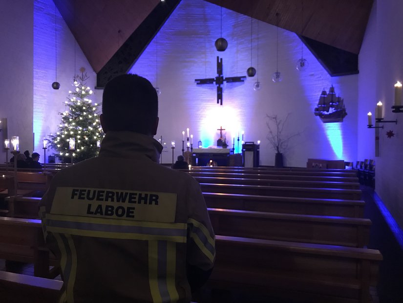 Wie in jedem Jahr finden in der Anker-Gottes-Kirche in Laboe diverse Gottesdienste statt. An einigen Gottesdiensten kommen die Gäste in einen besonderen Genuss und der Kirchenraum wird festlich mit Kerzenlicht erhellt und jeder Besucher bekommt zusätzlich eine Kerzen. Aufgrund der Zahl der offenen Flammen bat der Pastor die Feuerwehr um eine Brandsicherheitswache an zwei Gottesdiensten. Mit jeweils vier Kameraden sorgten diese für Sicherheit. Die Feuerwehr musste an beiden Tagen nicht tätig werden und konnte die Gottesdienste genießen.