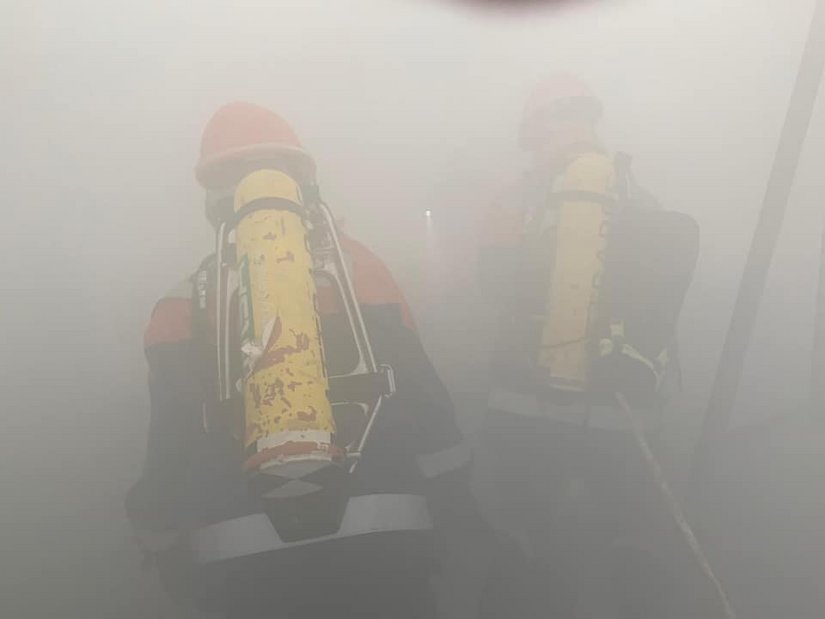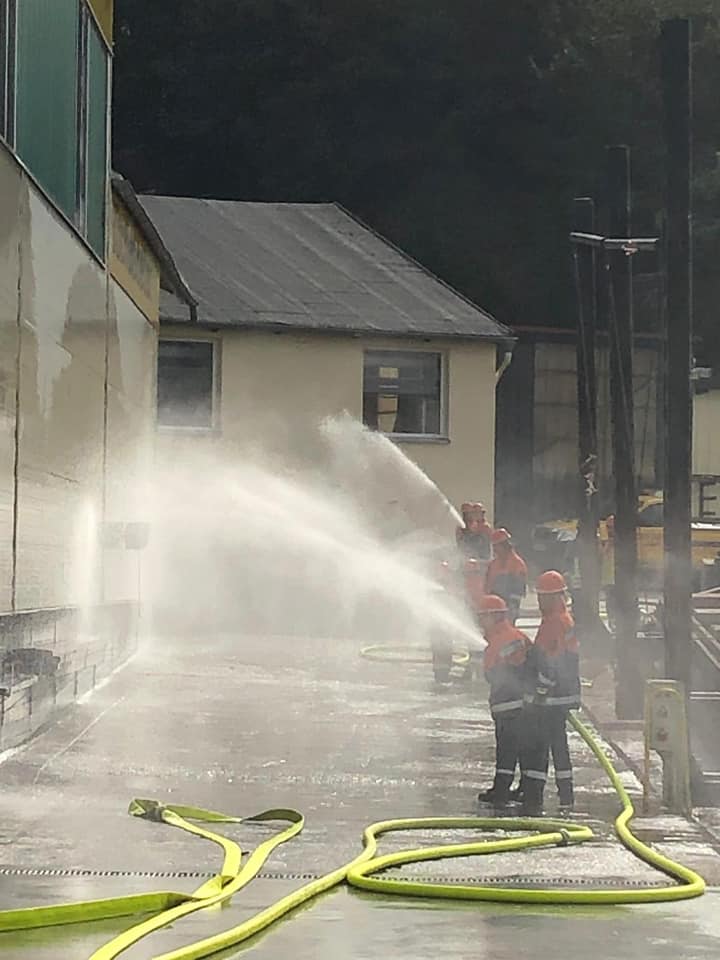 Die Jugendfeuerwehr aus Stein war für den Brandschutz auf der Rückseite des Gebäudes zuständig. Weitere Trupps aus den Nachbarwehren rüsteten sich ebenfalls mit Atemschutz(attrappen) aus und machten sich auf die Suche nach weiteren Personen in der stark (mit Diskonebel) verqualmten Halle.