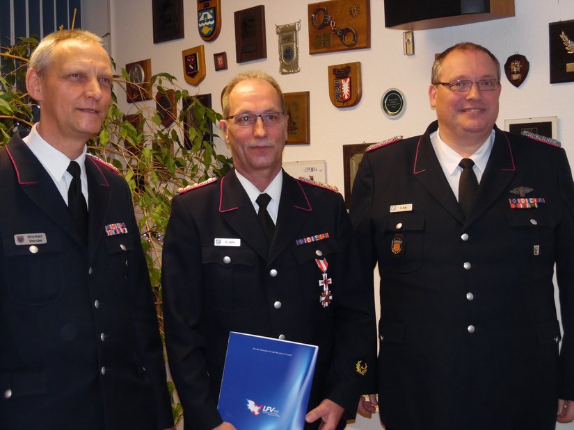 Mit dem Dienstabzeichen für 10 Jahre Mitgliedschaft in der Feuerwehr wurden Gerd Schütte, Jörn Dempel und Sven Walkows geehrt.Mit dem Dienstabzeichen für 30 Jahre Mitgliedschaft wurde Thorben Kirchhof geehrt.