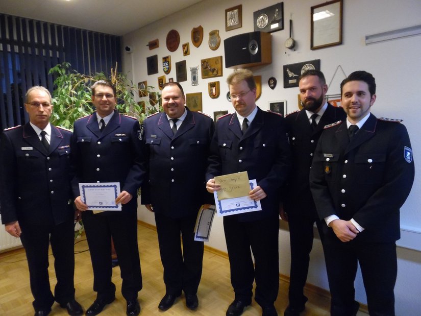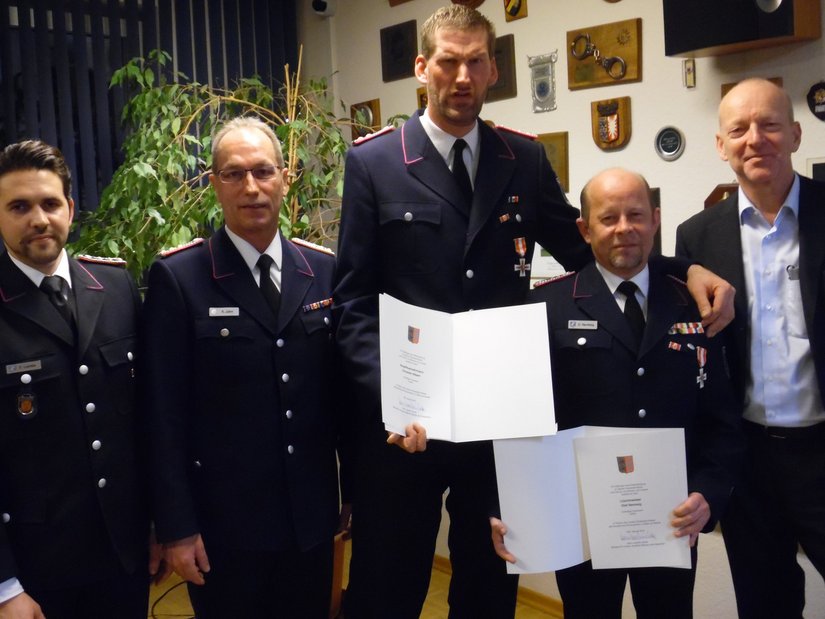 Das Brandschutzehrenzeichen in Silber am Bande bekamen die Kameraden Olaf Nentwig und Christian Hilbert verliehen.