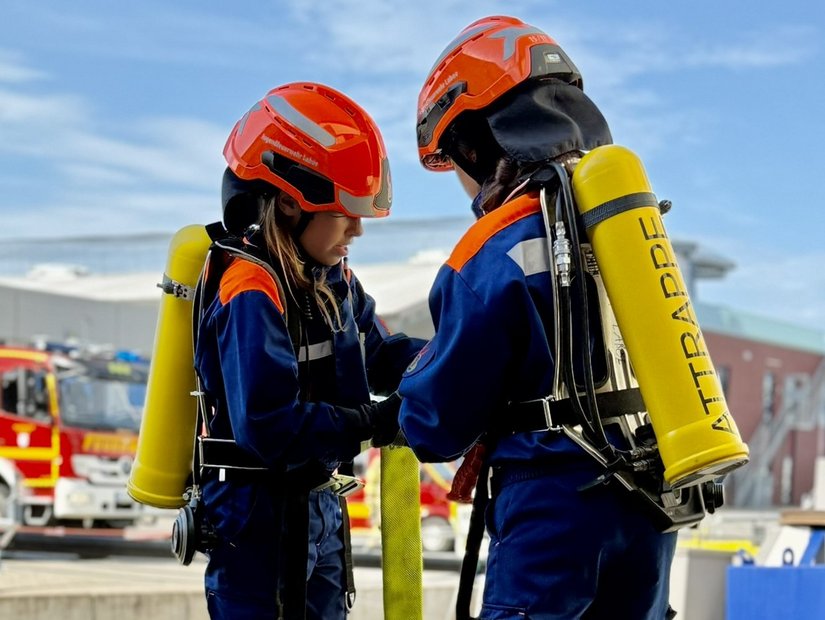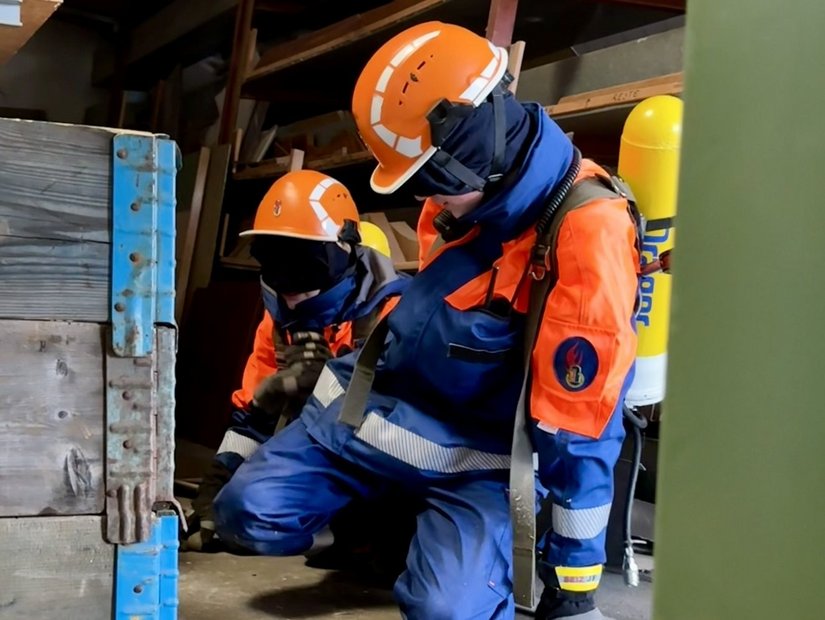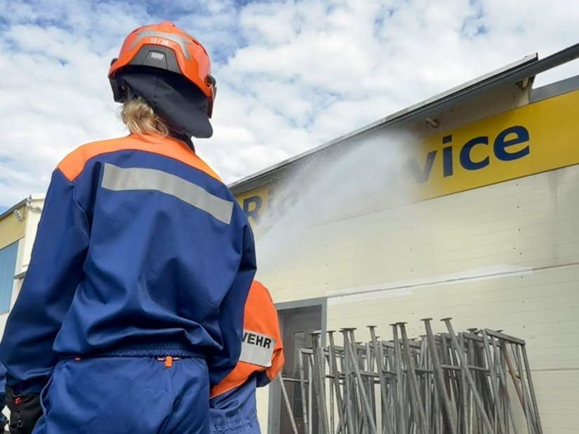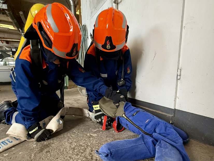 Ausgerüstet mit Atemschutzattrappen begaben sich die Kinder ins Gebäude, um nach den Vermissten zu suchen. Schon nach kurzer Zeit konnten die ersten „Personen“ – Teddys und Puppen – gerettet werden. Gleichzeitig wurde von außen mit mehreren Rohren die Brandbekämpfung eingeleitet. Nach rund 90 Minuten hatten alle Kinder, die wollten, die Möglichkeit, unter realistischen Bedingungen mit „Atemschutz“ im Innenangriff tätig zu werden. Am Ende waren alle Vermissten gefunden und gerettet.