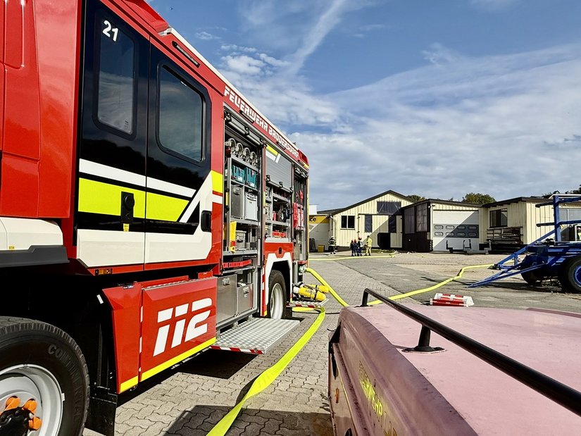 Pünktlich um 12 Uhr rückten die Kinder mit den Feuerwehrautos zum Übungsort aus. Vor Ort verschafften sich die Einsatzleiterin sowie die Gruppenführer einen Überblick über die Lage: Eine Verpuffung in einer Tischlerei mit mehreren vermissten Personen. Daraufhin gaben sie ihre Befehle an die Trupps weiter. Kurz darauf traf auch das Löschfahrzeug aus Brodersdorf am Einsatzort ein.