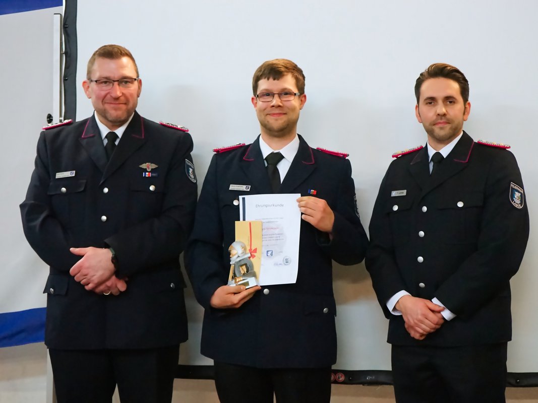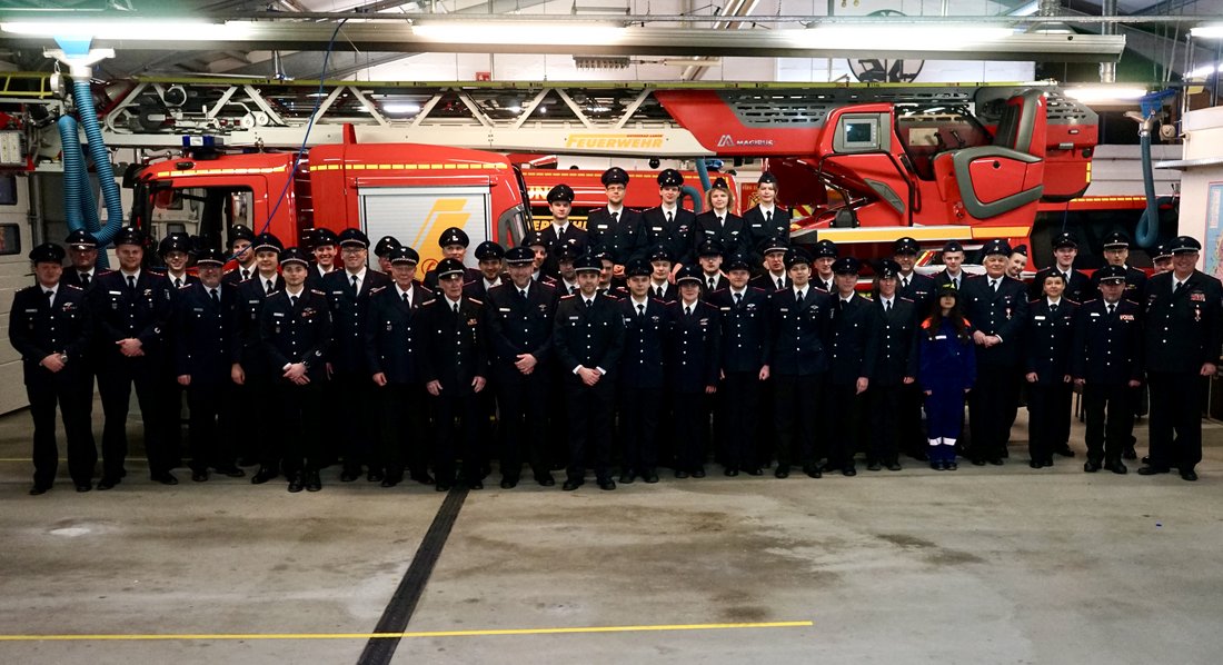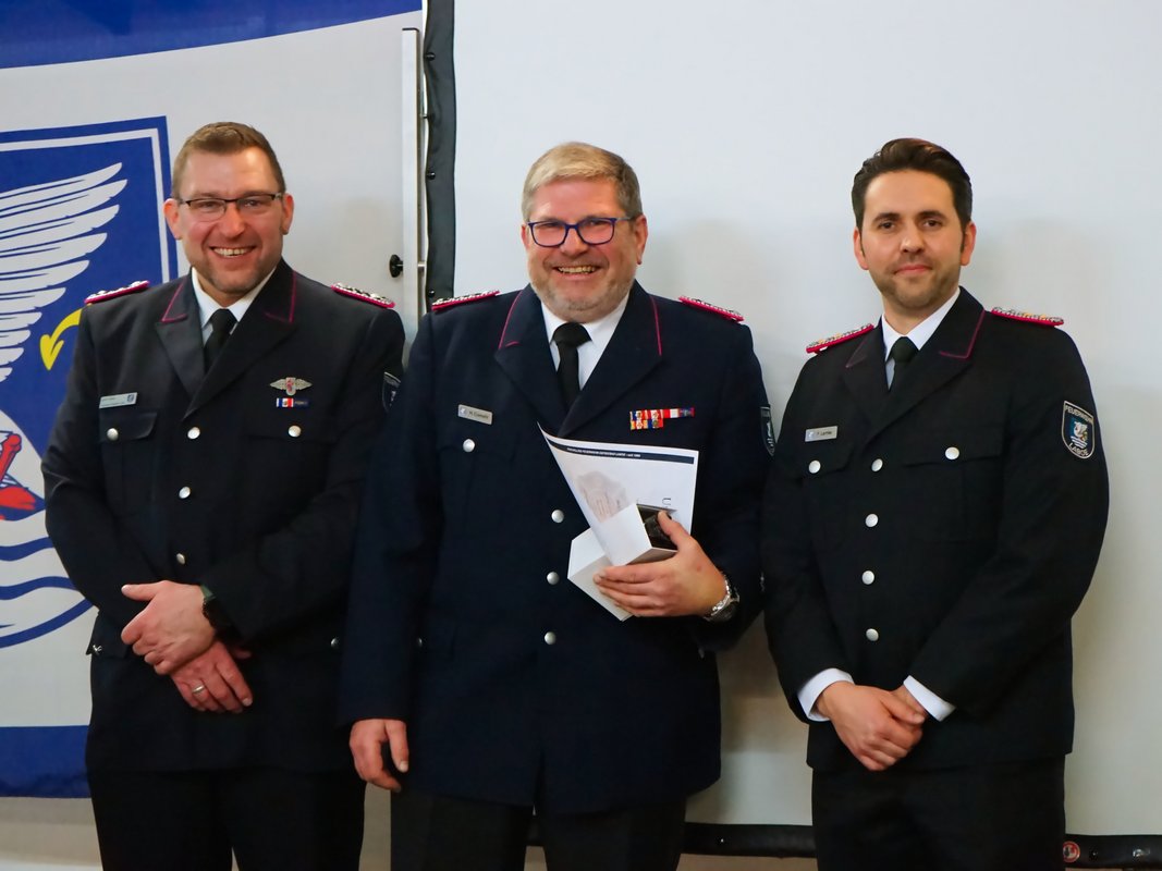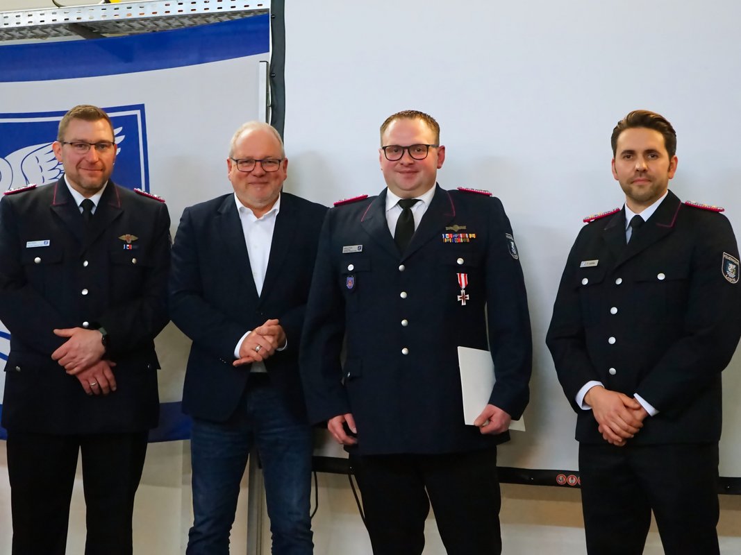 Für ihre langjährige aktive Dienstzeit wurden zahlreiche Kameraden geehrt: Volker Arp erhielt für 40 Jahre aktiven Dienst das Brandschutzehrenzeichen in Gold am Bande. Stephan Pickel und Thomas Jansen wurden für 25 Jahre mit dem Brandschutzehrenzeichen in Silber am Bande ausgezeichnet. Weitere Ehrungen erhielten Stefan Jahn und Stephan Pickel für 30 Jahre sowie Christian Fischer für 20 Jahre aktive Dienstzeit. Marlon Schramm, Linus Jahn und Vasily Nakostenko wurden für 10 Jahre aktiven Dienst geehrt. Feuerwehrmitglied des Jahres 2025 wurde Dennis Schalkowski, der sich durch eine besonders hohe Dienstbeteiligung auszeichnete.