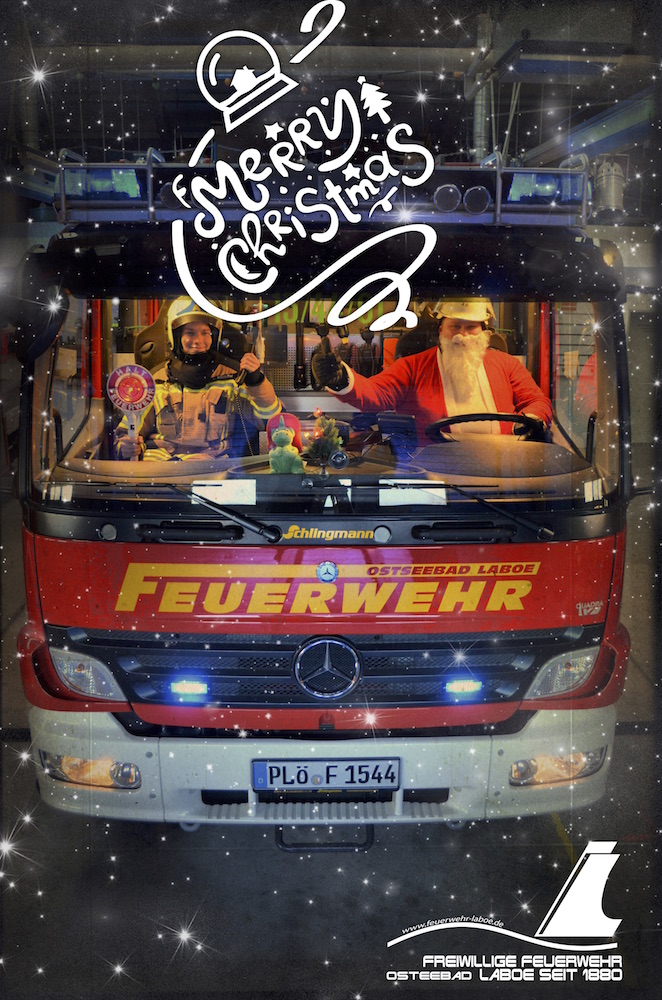 Hiermit wünscht die Feuerwehr Laboe allen Bürgern und BürgerInnen, allen passiven Mitgliedern und allen Unterstützern der freiwilligen Blauröcke aus dem Ostseebad Laboe ein besinnliches und frohes Weihnachtsfest. Wir hoffen Sie können die Feiertage mit ihren Liebsten verbringen und etwas vom Alltag abschalten.