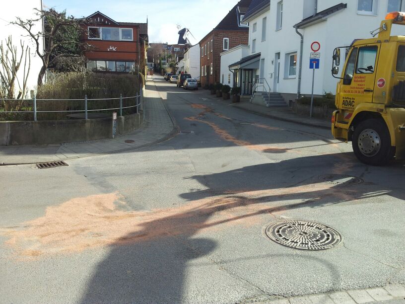Die Feuerwehr Laboe wurde zu einer Ölspur im Bereich Steinkampberg und Hafenstraße alarmiert. Die Feuerwehr streute eine ca 3km lange Ölspur ab und reinigte anschließend die Straße. Während des Einsatzes kam es zu erheblichen Verkehrsbehinderungen. Aktuell ist für Zweiradfahrer im Bereich Steinkampberg und Hafenstraße besondere Vorsicht zu wahren. Bitte achten Sie auf die dort aufgestellten Hinweisschilder.