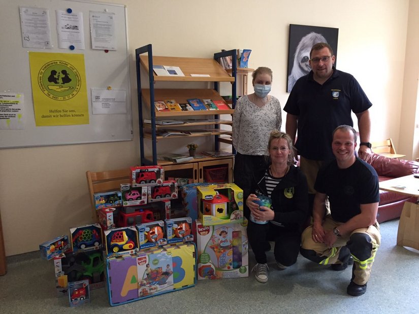 Leider wurde uns von der Uniklinik die Zeit vorgegeben, wo sich alle Kinder zwischen 1 und 3 Jahren grade auf ihren Zimmern zum Mittagsschlaf befanden, aber über die Geschenke wurde sich natürlich trotzdem gefreut.