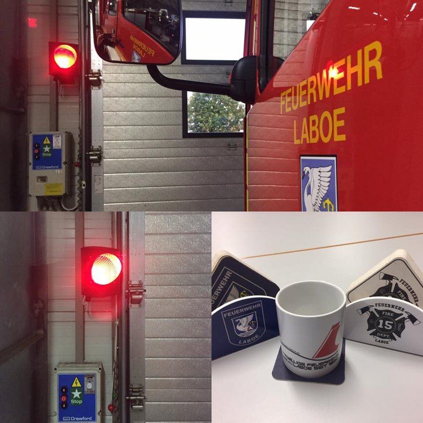 Zudem beschafften wir aus der Kameradschaftskasse neue Tassen, Untersetzer und Untersetzerhalter. Natürlich wurden alle diese Gegenstände im Design derFeuerwehr Laboe gestaltet.