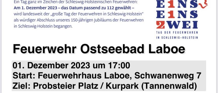 Wir möchten Euch alle gerne herzlich am 01.12. zum 112-Tag der Feuerwehren in Schleswig-Holstein einladen!