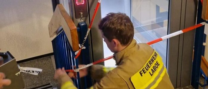 Alarmiert zu einem feststeckenden Aufzug mit zwei eingeschlossenen Personen, öffneten wir die Fahrstuhltür und befreiten die Personen unverletzt.